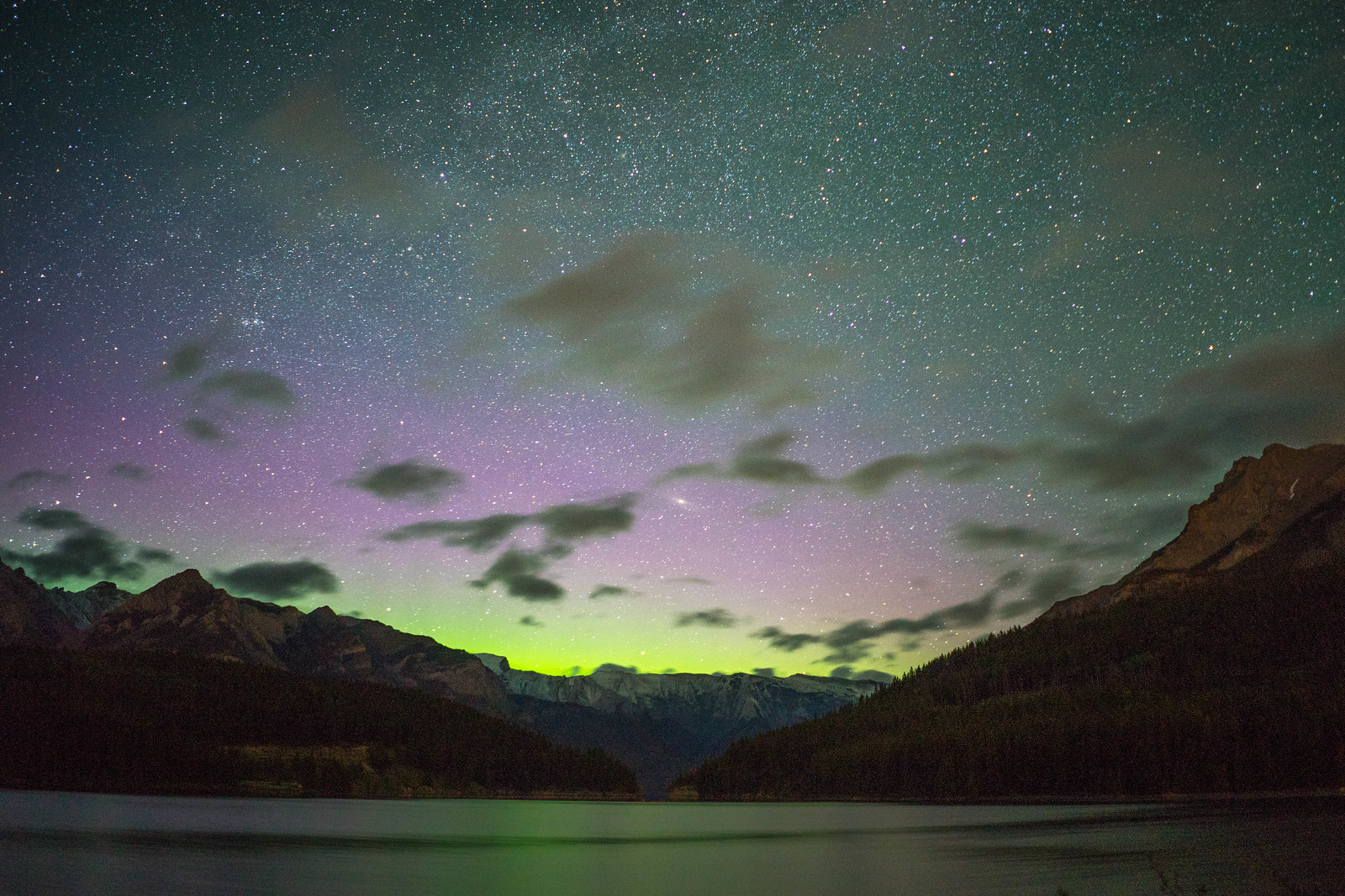 In the early morning, fog covers the crystalline water, and on clear days you can witness the near-perfect reflection of the evergreen trees and Mount Rundle. Or, if you’re camping in the campsite, you might be able to catch some epic stargazing along the lakeside. If you’re at Banff in the fall or winter, you can sometimes catch the aurora borealis glistening above the trees on clear nights!